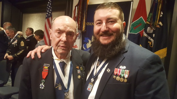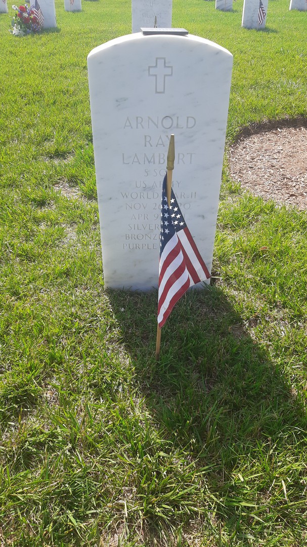 Ray Lambert is recognized by President Trump on the 75th Anniversary of D-Day in Normandy, France. Although he was critically wounded during the 1st wave of 1st Infantry Division soldiers onto the beaches of Easy Red Sector, Ray continued fighting to save his fellow soldiers from both the trechery of the waters of the English Channel and the lethal fires from the bluffs above them. He only stopped when he lost consciousness from blood loss. He spent a year in a British hospital recovering from his wounds and broken back from being crushed by the ramp of a Higgins Boat.